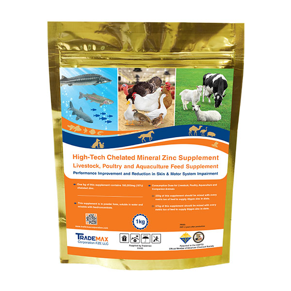 - ✔ El Complemento Alimenticio Mineral Quelatado Zinc de Alta Tecnología es un producto único que contiene zinc quelatado para ganado, aves de corral, especies acuáticas y animales de compañía. Este Complemento se sintetiza y produce en base a la tecnología de “Compuestos de Quelatos”. Esta tecnología está patentada en la Oficina de Patentes y Marcas Registradas de Estados Unidos (USPTO). Los complementos producidos basados en esta tecnología, debido a su estructura única, disfrutan de una mejor tasa de absorción que otros complementos quelatados y minerales disponibles. La adición de este Complemento a la dieta maximiza el rendimiento y la calidad de producción de los rebaños y minimiza la incidencia de enfermedades y mortalidad.